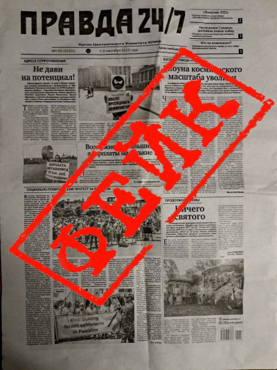 В нескольких районах Москвы распространяются подделки с логотипом «Правда 24/7», набранным нашим хорошо узнаваемым шрифтом. Первая полоса фальшивок является копией подлинного выпуска нашей газеты под №77 от 19—20 июля этого года, однако номер и дата выхода изменены, исчезло также и упоминание о том, что газета основана В.И. Лениным. Остальные три полосы этой подделки представляют собой подборку низкопробной грязи, при помощи которой пытаются скомпрометировать кандидатов от КПРФ на муниципальных выборах в столице.
