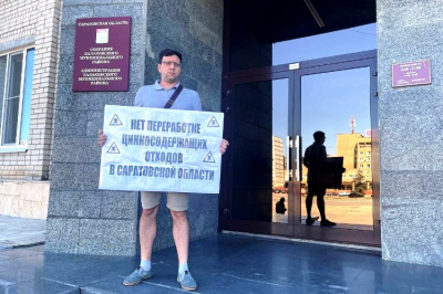 Одиночный пикет на крыльце здания городской администрации в Балакове провёл первый секретарь райкома КПРФ Денис Мамаев, выступив против строительства в Саратовской области завода по переработке цинксодержащих отходов.