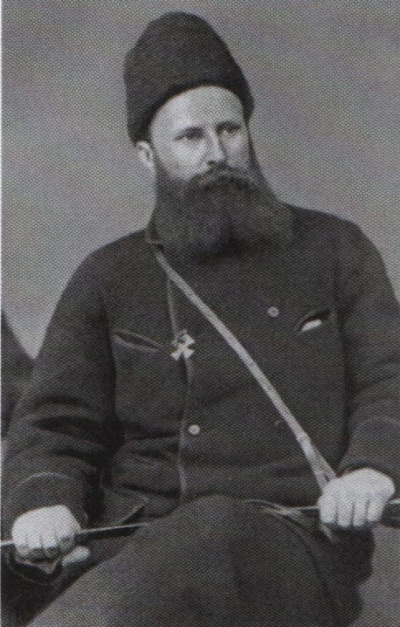 «Когда я выезжал из Плевны, чтобы приготовиться к героическому походу за Балканы, стоял холодный и туманный день. Моросило… Словно серым дымом окутало дали. Конь нехотя шёл по склонам гор, окружавших Плевну… Кругом останки русских солдат, убитых здесь 30 августа… Из тумана выделяется какой-то всадник. Большая чёрная папаха, бурка… Всматриваюсь — большая борода, резкие черты характерного лица…