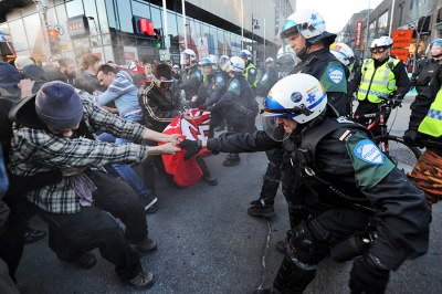 Тем временем в Монреале было явно не до борьбы за права женщин: во втором по величине городе Канады многотысячная антинатовская и пропалестинская манифестация, приуроченная к ежегодной сессии Парламентской ассамблеи Североатлантического альянса, переросла в погромы и ожесточённые столкновения с полицией. Демонстранты били окна в здании Дворца конгрессов и витрины магазинов, поджигали автомобили и атаковали стражей порядка, в которых летели камни, дымовые шашки, пиротехника и банки с краской. Силовики ответили дубинками и слезоточивым газом.