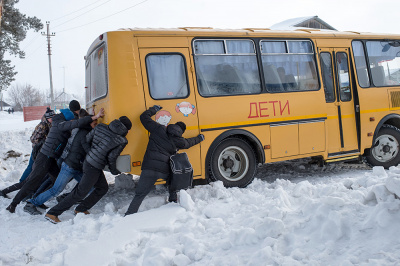 Одна из таких проблем — доставка детей в школы. По замыслу чиновников-«оптимизаторов», подвоз детей из отдалённых сельских территорий должны осуществлять школьные автобусы. Такая система в РФ стала внедряться с конца 1990-х годов.
