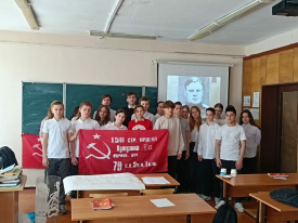 В честь 80-летнего юбилея окончания Великой Отечественной войны представители ЛКСМ РФ побывали в школе № 86 донской столицы. На встрече с учащимися восьмых классов главной темой стал подвиг Красной Армии и советского народа, сломавших хребет фашистской Германии, тяжелейшие испытания и лишения, выпавшие на долю СССР в годы войны. Беседовали со старшеклассниками об их ровесниках военных лет, которые со школьной скамьи уходили на фронт, сражались с врагом в партизанских отрядах, ковали Победу в тылу на заводах и фабриках.